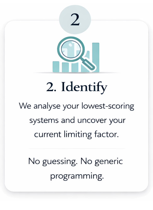 A monthly 30-minute performance and resilience review to identify your weakest links and give you a focused plan to improve them.